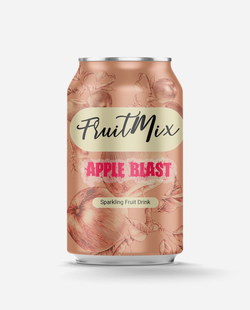 For this post I have decided to design a can for sparkling fruit drink. What I had in mind was something with a flair of joke.