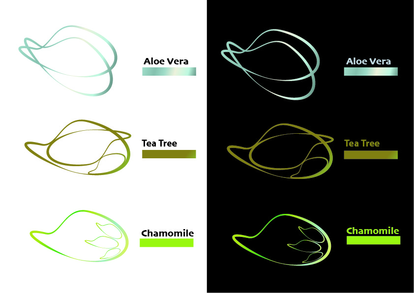 I have established the logo as shown on the first image. With the type and the colours established I could proceed to creating and developing colours more including creating more logos as I wanted to create three different types of lotions.