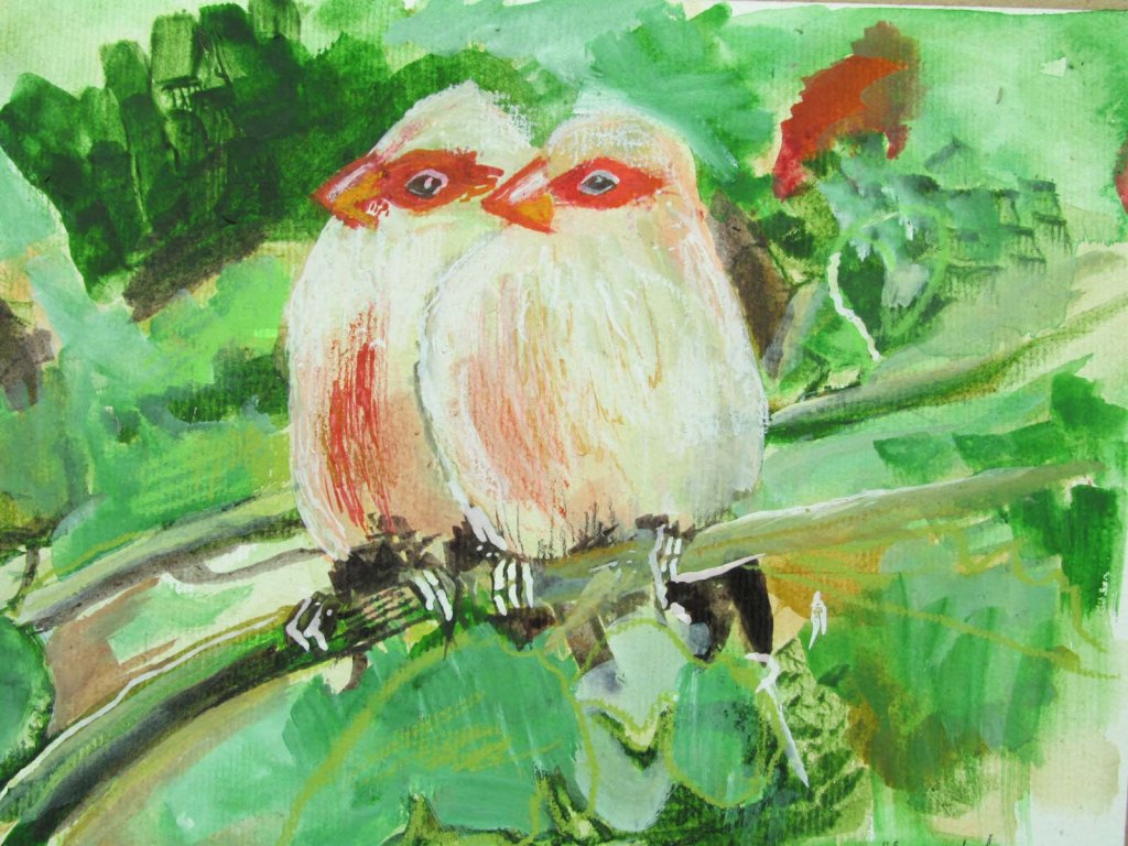 I have painted these two birds some time ago. I no longer remember what they are called.