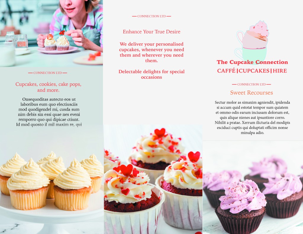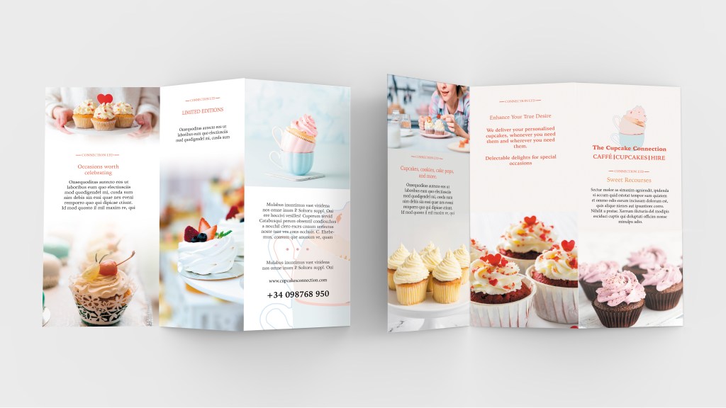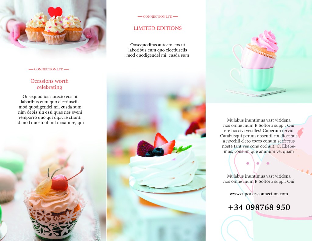 For today post I have prepared a trifold brochure for company specializing in making cupcakes.