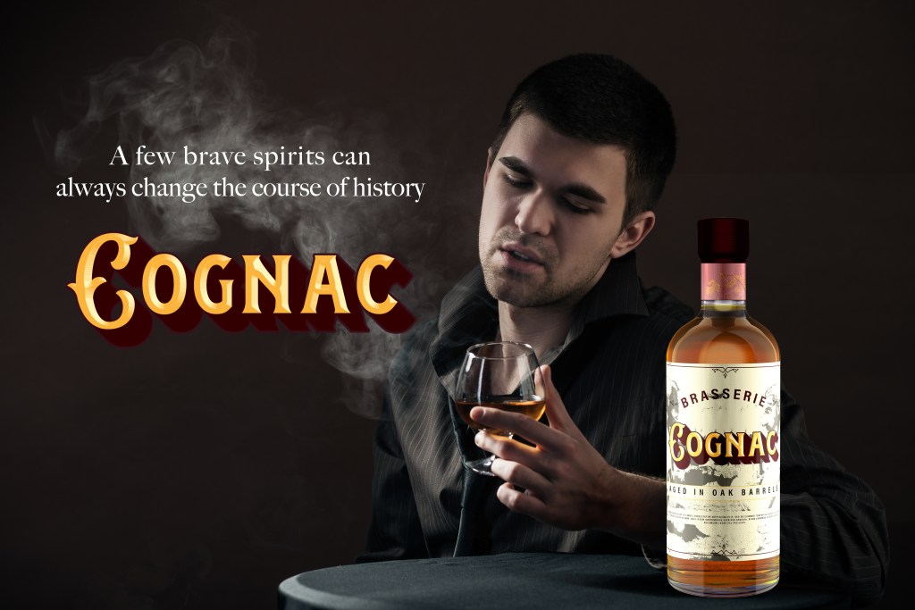 Cognac is a variety of brandy named after the commune of Cognac, France. It is produced in the surrounding wine-growing region in the departments of  in the departments of Charente and Charente-Maritime. I wanted to keep the vineyard in the background.