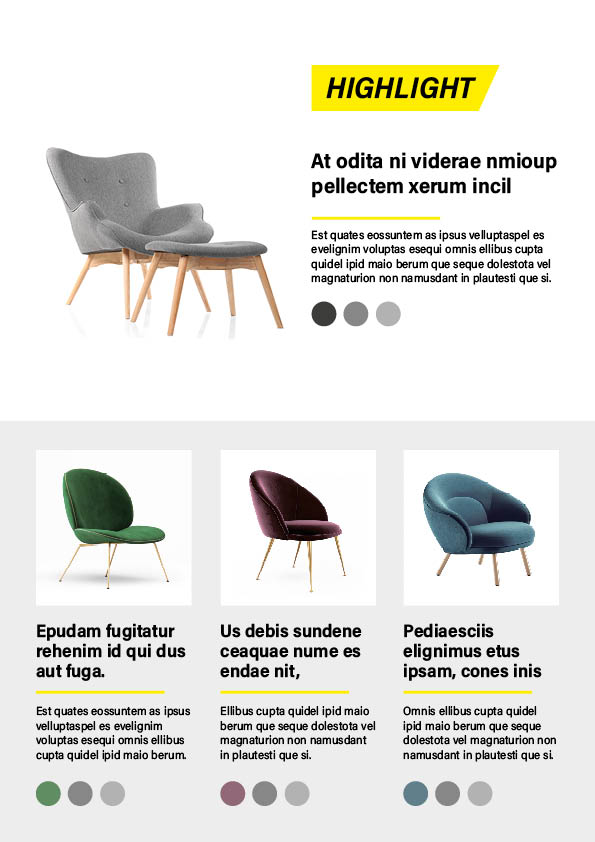 Recently I have decided that I want to do some more work on interior design. For this very reason I created this mock catalog for a discounted chair company. At a start I followed a tutorial. This is the best way for me to learn.